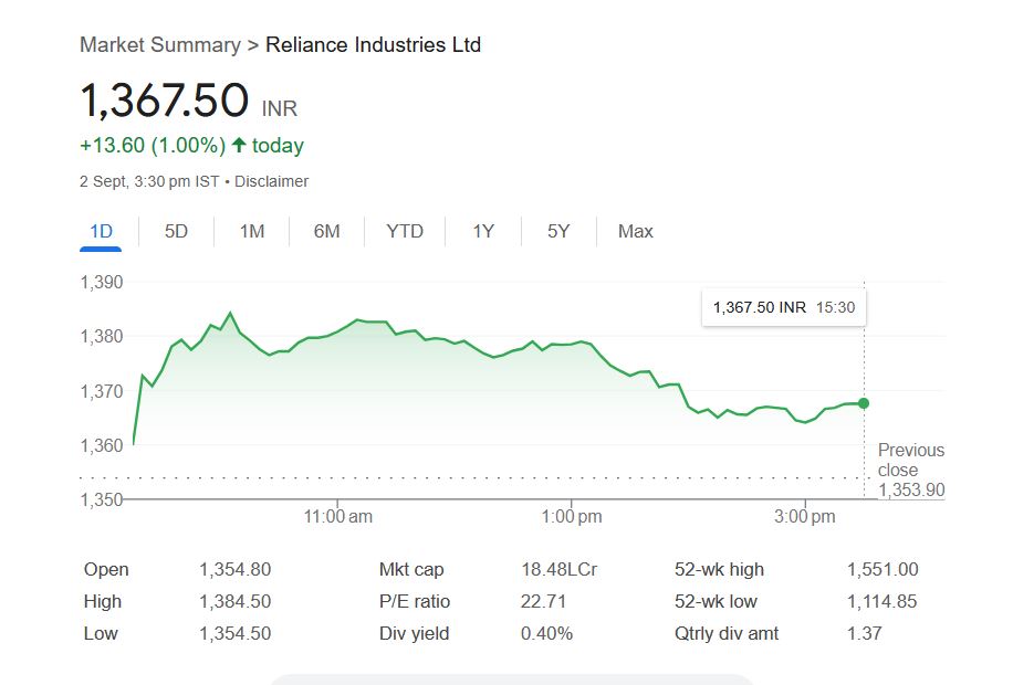 RIL Share Price: रिलायंस के शेयर में शानदार तेजी, 2% की छलांग ने दिलाई निफ्टी में टॉप पोजीशन