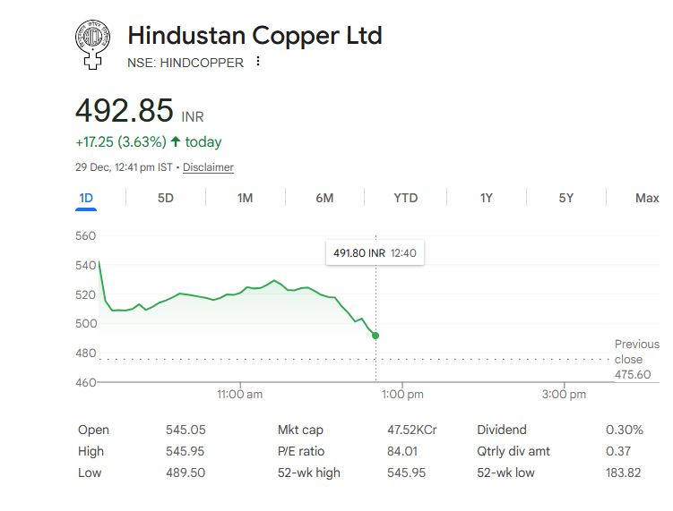 Hindustan Copper Share अपडेट (29 दिसंबर 2025)