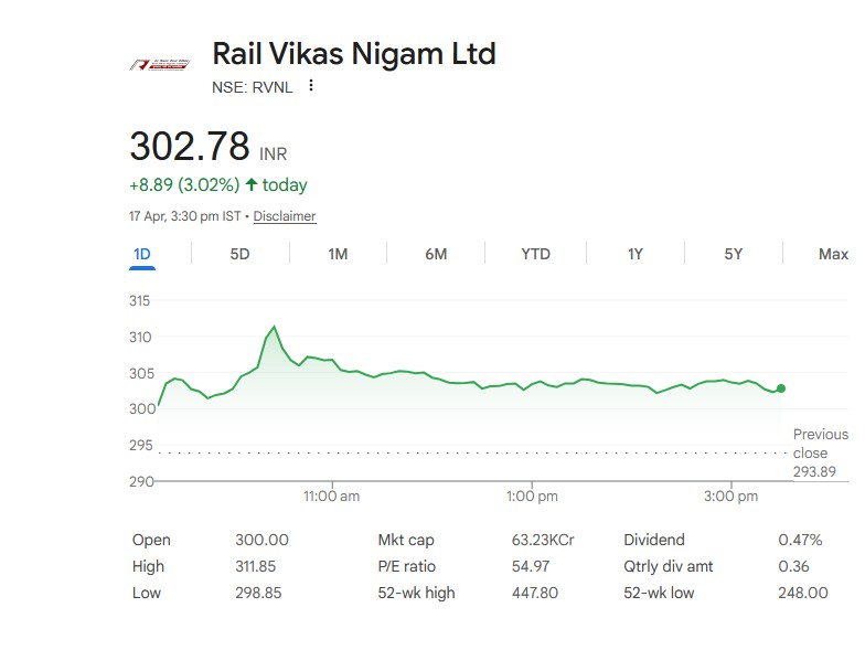 Rail Vikas Nigam Ltd (RVNL) – स्टॉक जानकारी (17 अप्रैल 2026)