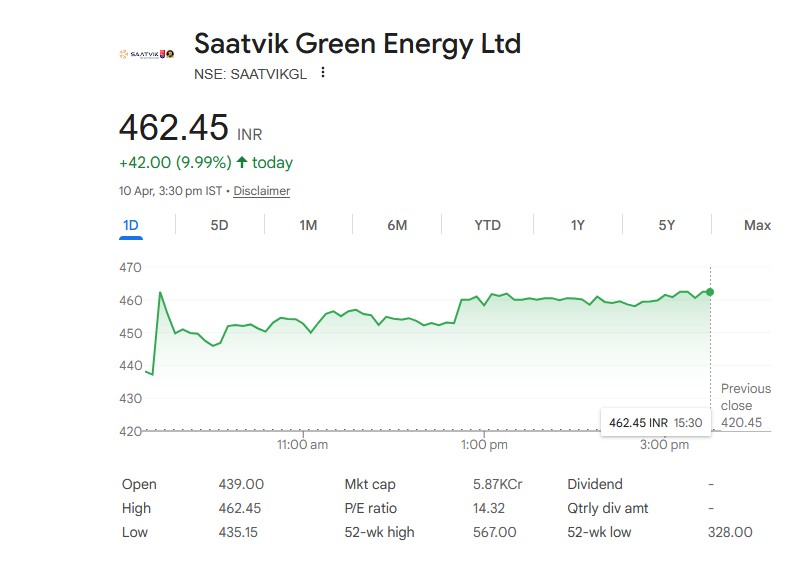 Saatvik Green Energy Ltd – शेयर विवरण (10 अप्रैल 2026)