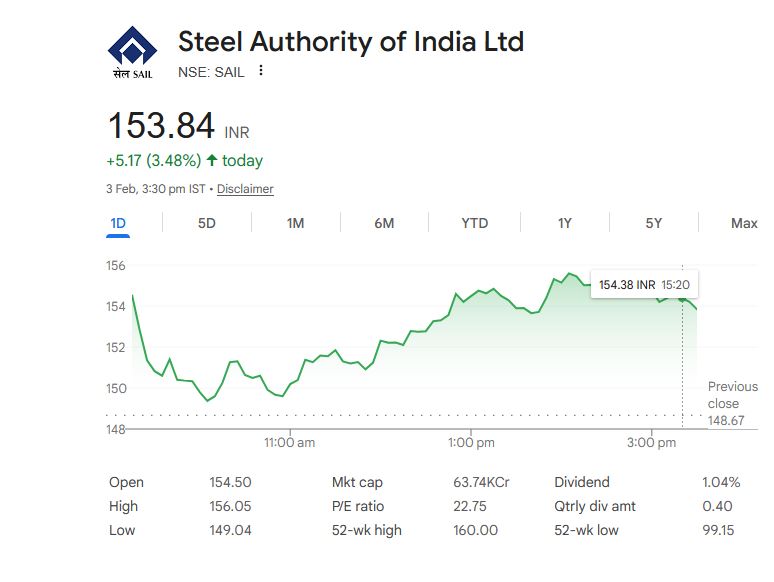 Steel Authority of India Ltd – शेयर विवरण (3 फरवरी 2026)