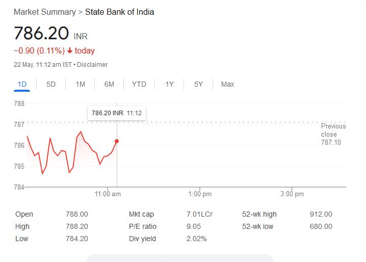 - SBI का स्टॉक 786.20 रुपये पर कारोबार करता दिखा