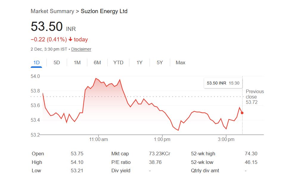 Suzlon Energy Share: सुजलॉन एनर्जी के शेयर पिछले कुछ दिनों से लगातार दबाव में हैं। मंगलवार 2 दिसंबर को शेयर लगातार चौथे दिन लाल निशान में बंद हुए। निवेशकों के मन में सवाल उठ रहा है कि क्या शेयर की गिरावट आगे भी जारी रहेगी या यह निचले स्तरों पर खरीदने का मौका हो सकता है।