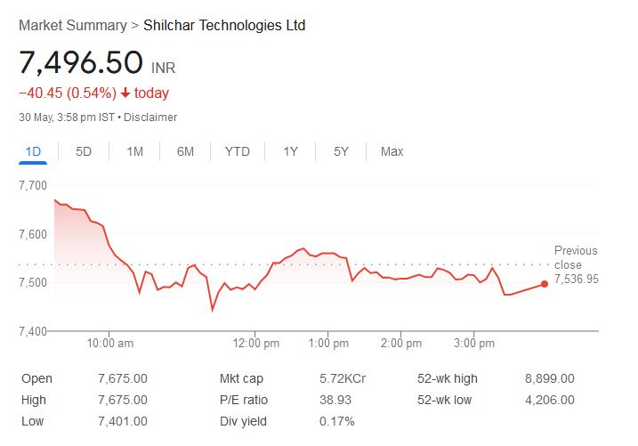 Shilchar Technologies का शेयर लगातार निवेशकों का भरोसा जीतता आ रहा है। 30 मई 2025 को बीएसई पर इसका शेयर 7,496.50 रुपये पर बंद हुआ। पिछले कुछ समय में शेयर ने जबरदस्त रिटर्न दिए हैं। 3 महीने में 35% की तेजी दर्ज की गई है। एक साल में 52% का उछाल और और सबसे खास बात 5 साल में 15,136.79% का ऐतिहासिक रिटर्न दे चुका है।