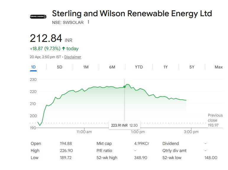 Sterling and Wilson Renewable Energy Ltd शेयर अपडेट (20 अप्रैल 2026)