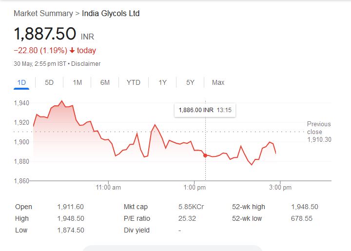 इंडिया ग्लाइकॉल्स का शेयर साल 2025 की शुरुआत से अब तक लगभग 50% चढ़ चुका है। आज यह 1.19% की गिरावट के साथ 1,887.50 रुपये के करीब ट्रेड कर रहा है। लेकिन शानदार रिटर्न के बाद शेयर स्प्लिट का फैसला बताता है कि कंपनी लंबी अवधि के लिए छोटे निवेशकों को भी आकर्षित करना चाहती है।