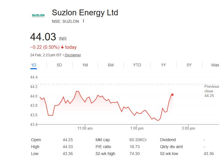 Suzlon Energy Ltd – आज का शेयर प्रदर्शन (24 फरवरी 2026)