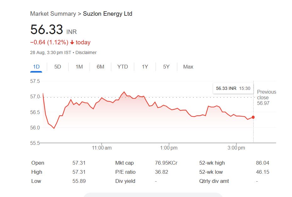 Market Summary: Suzlon Energy Ltd (28 अगस्त 2025)