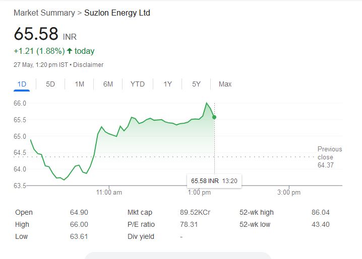 - बाजार गिरावट के बावजूद सुजलॉन एनर्जी में 1.88% की तेजी।