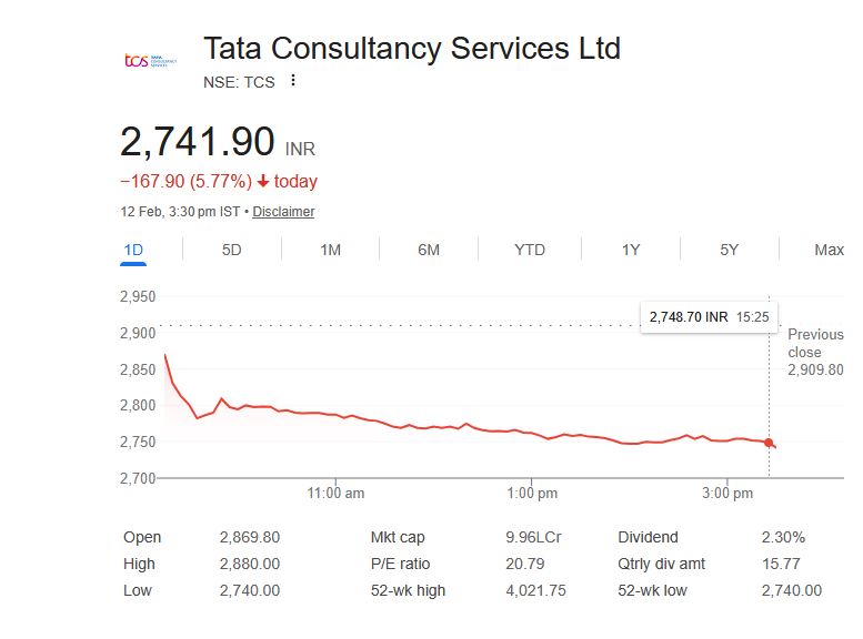 Tata Consultancy Services Ltd – स्टॉक विवरण (12 फरवरी 2026)