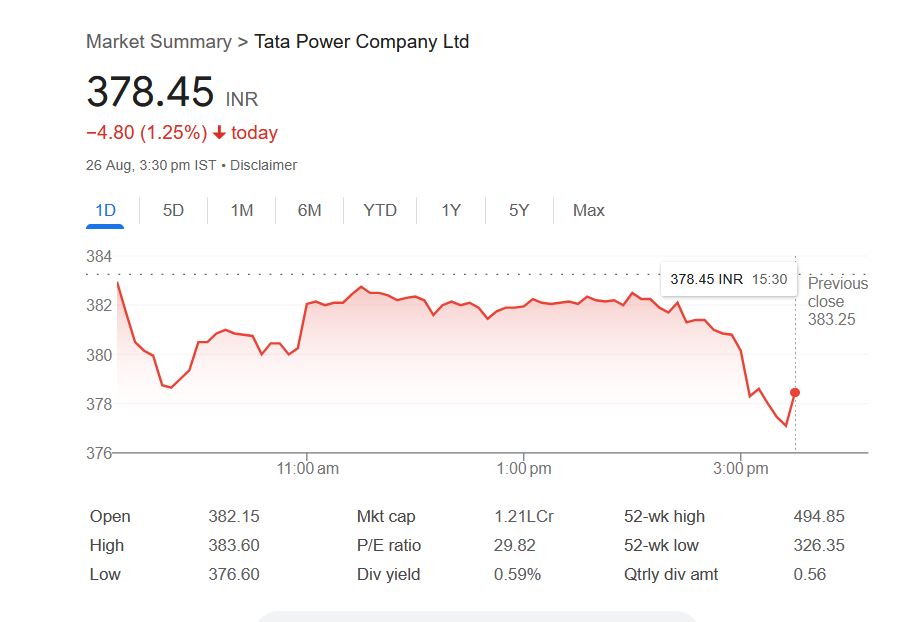 Tata Power Company Ltd – शेयर बाजार सारांश (26 अगस्त 2025)