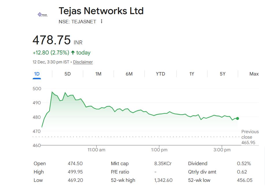 तेजस नेटवर्क्स के शेयरों में पहले आई बड़ी गिरावट