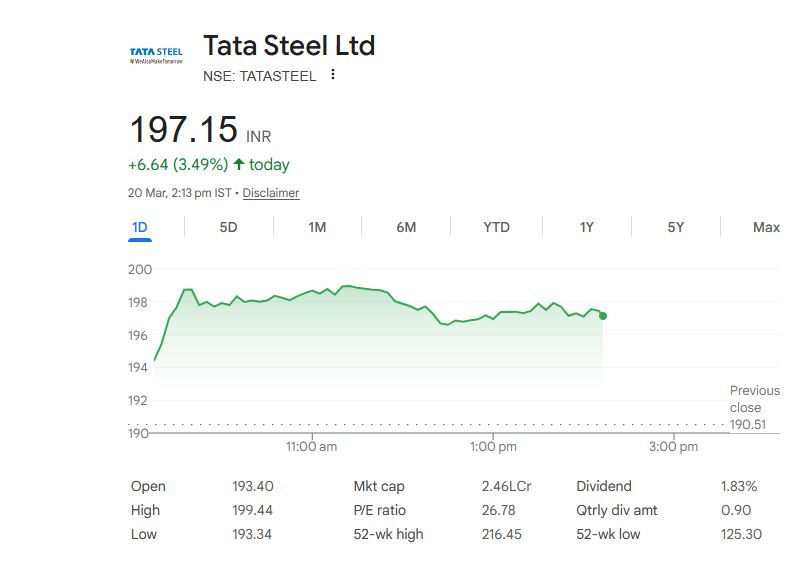 Tata Steel Ltd – स्टॉक जानकारी (20 मार्च 2026)