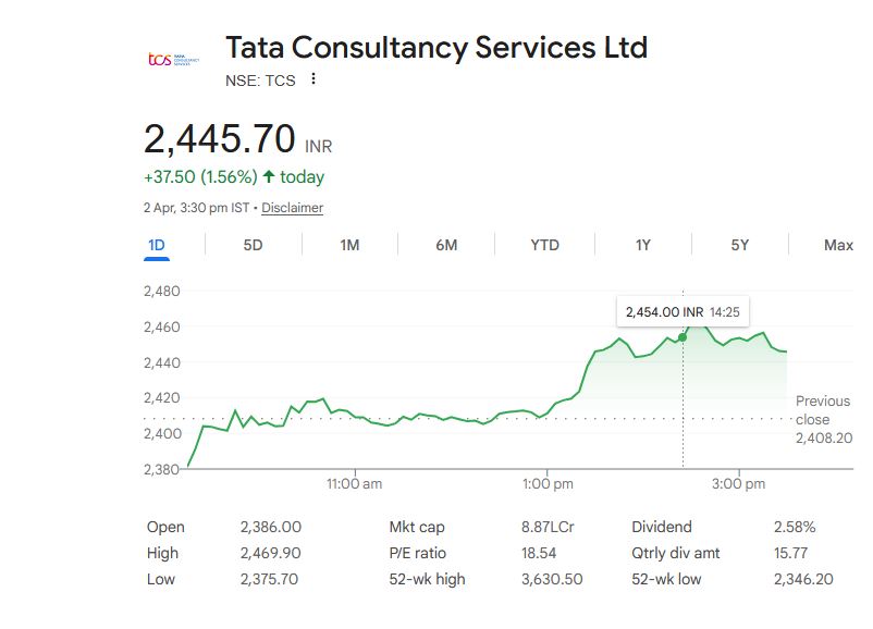 Tata Consultancy Services Ltd – शेयर विवरण (2 अप्रैल 2026)