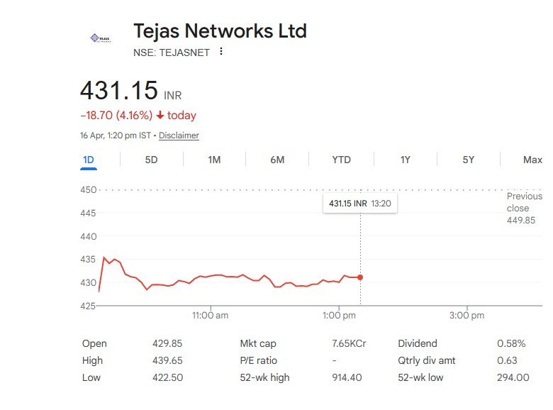 Tejas Networks Ltd – स्टॉक अपडेट (16 अप्रैल 2026)