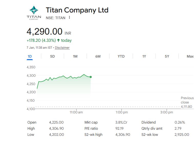 Titan Company Ltd – 7 जनवरी 2026 (स्टॉक डेटा)