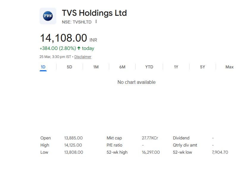 TVS Holdings Dividend Stock: TVS Holdings ने अपने निवेशकों के लिए हर शेयर पर 86 रुपये का अंतरिम डिविडेंड घोषित किया है। डिविडेंड के लिए 2 अप्रैल 2026 को रिकॉर्ड डेट तय की गई है और पात्र निवेशकों को यह भुगतान 30 दिनों के भीतर किया जाएगा।