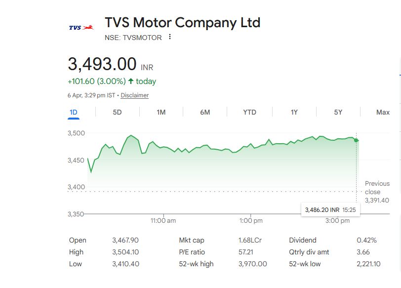 TVS Motor Company Ltd – स्टॉक अपडेट (6 अप्रैल 2026)