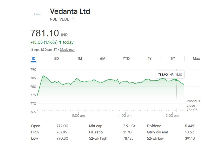 वेदांता लिमिटेड स्टॉक डिटेल्स (16 अप्रैल 2026)
