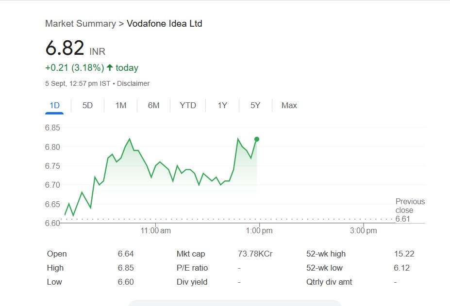 Vodafone Idea Ltd – Market Summary (5 सितंबर 2025)