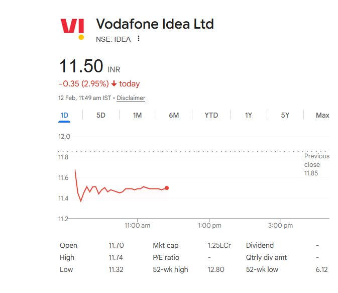 Vodafone Idea Ltd – शेयर जानकारी (12 फरवरी 2026)