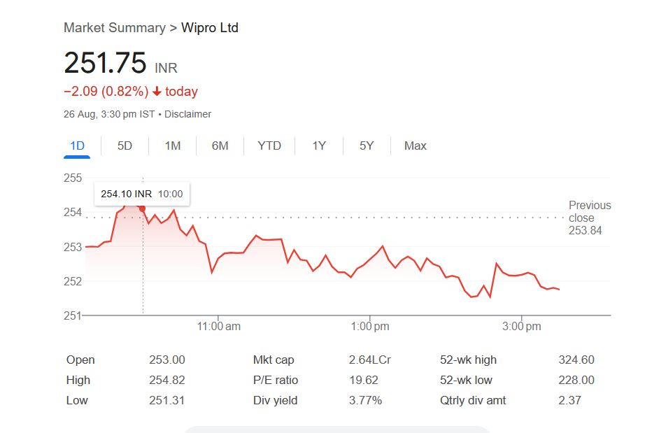Wipro Ltd शेयर मार्केट सारांश (26 अगस्त 2025)