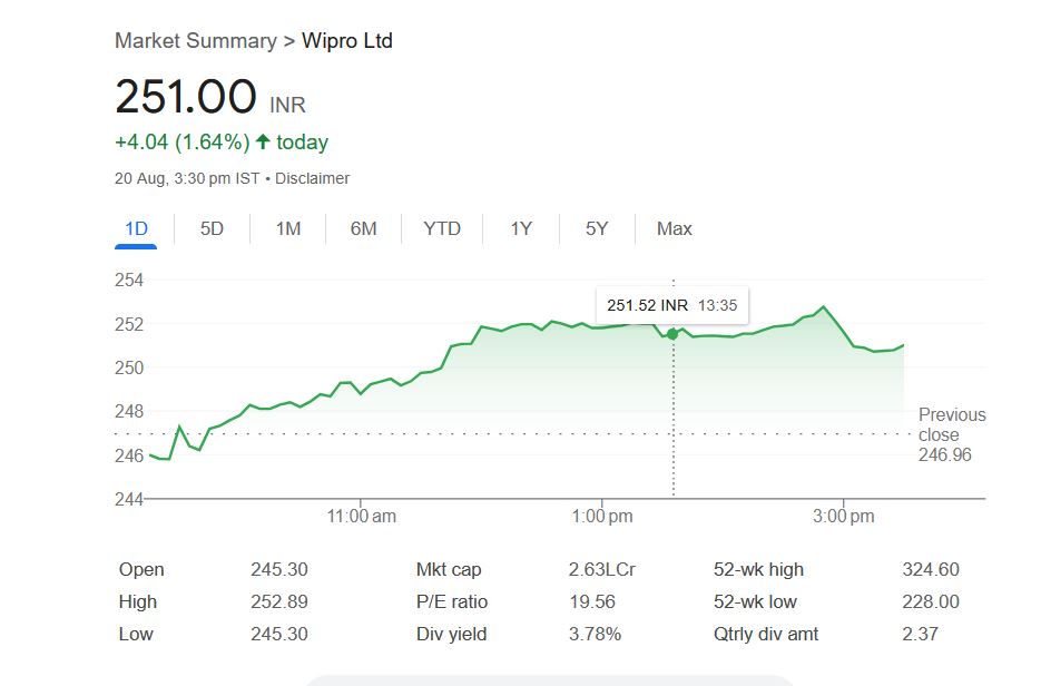 Wipro Ltd – शेयर मार्केट सारांश (20 अगस्त 2025)