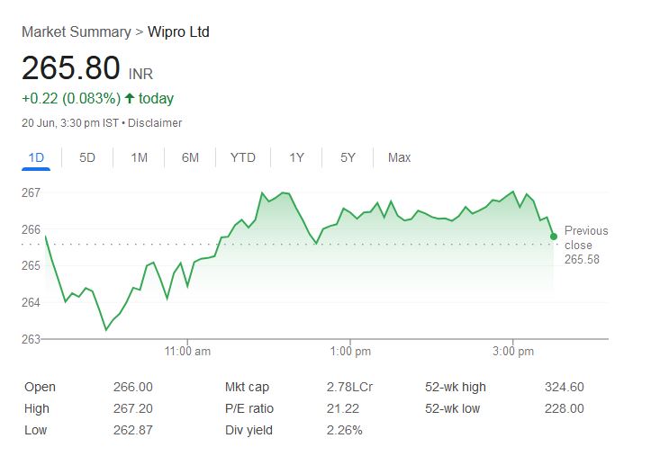 - विप्रो का शेयर शुक्रवार को 265.80 रुपये पर बंद हुआ।