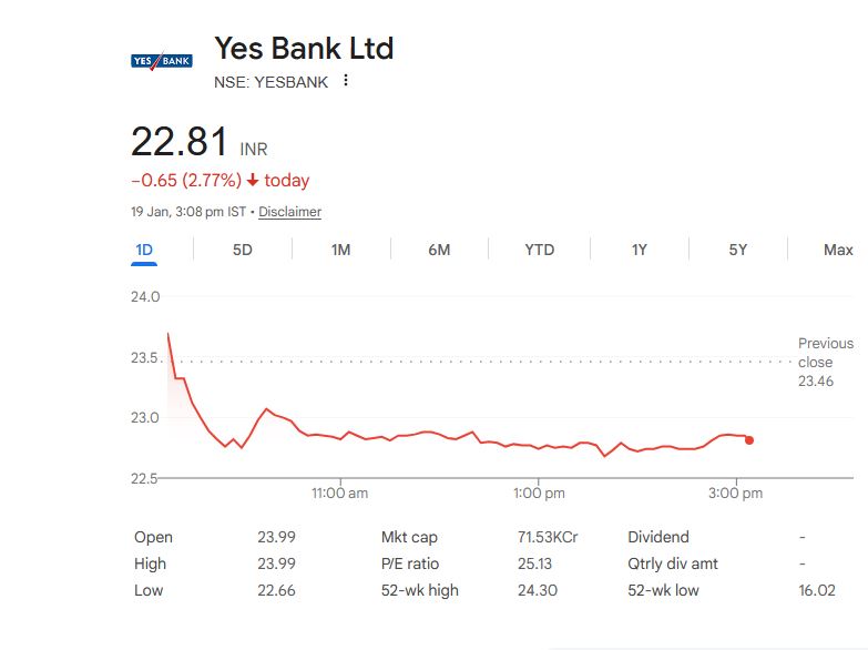 Yes Bank Ltd – शेयर विवरण (19 जनवरी)