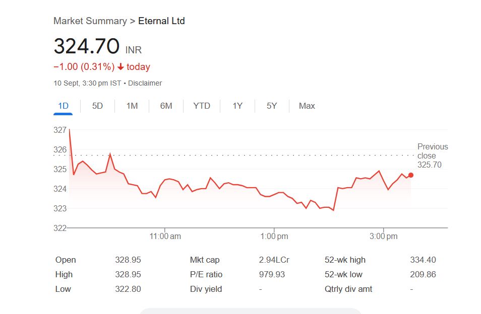 Zomato शेयर डिटेल्स (10 सितंबर 2025)