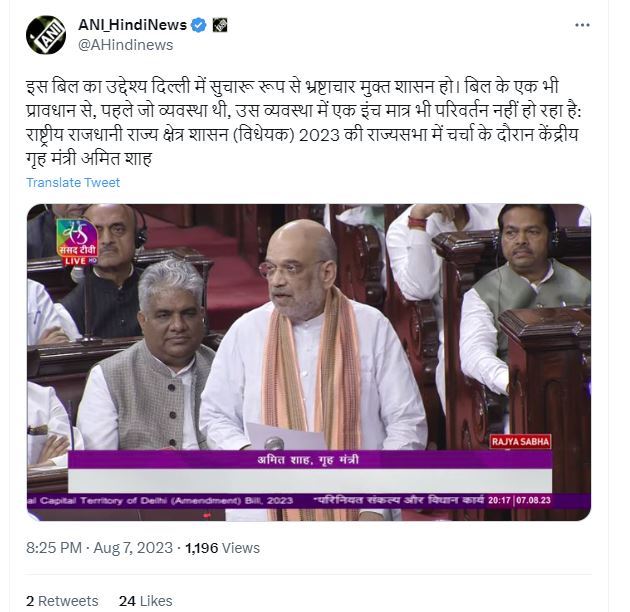 केंद्रीय गृह मंत्री अमित शाह ने राज्यसभा में राष्ट्रीय राजधानी क्षेत्र दिल्ली सरकार (संशोधन) विधेयक 2023 पेश किया। pic.twitter.com/821lj2QCTX