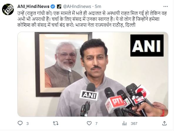 — ANI_HindiNews (@AHindinews) August 7, 2023
