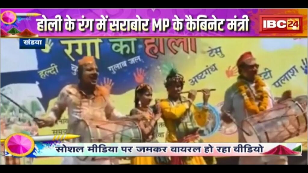 Home » Top News » Khandwa Holi: Cabinet ministers of MP drenched in the colors of Holi. Minister Kunwar Shah danced by playing drums