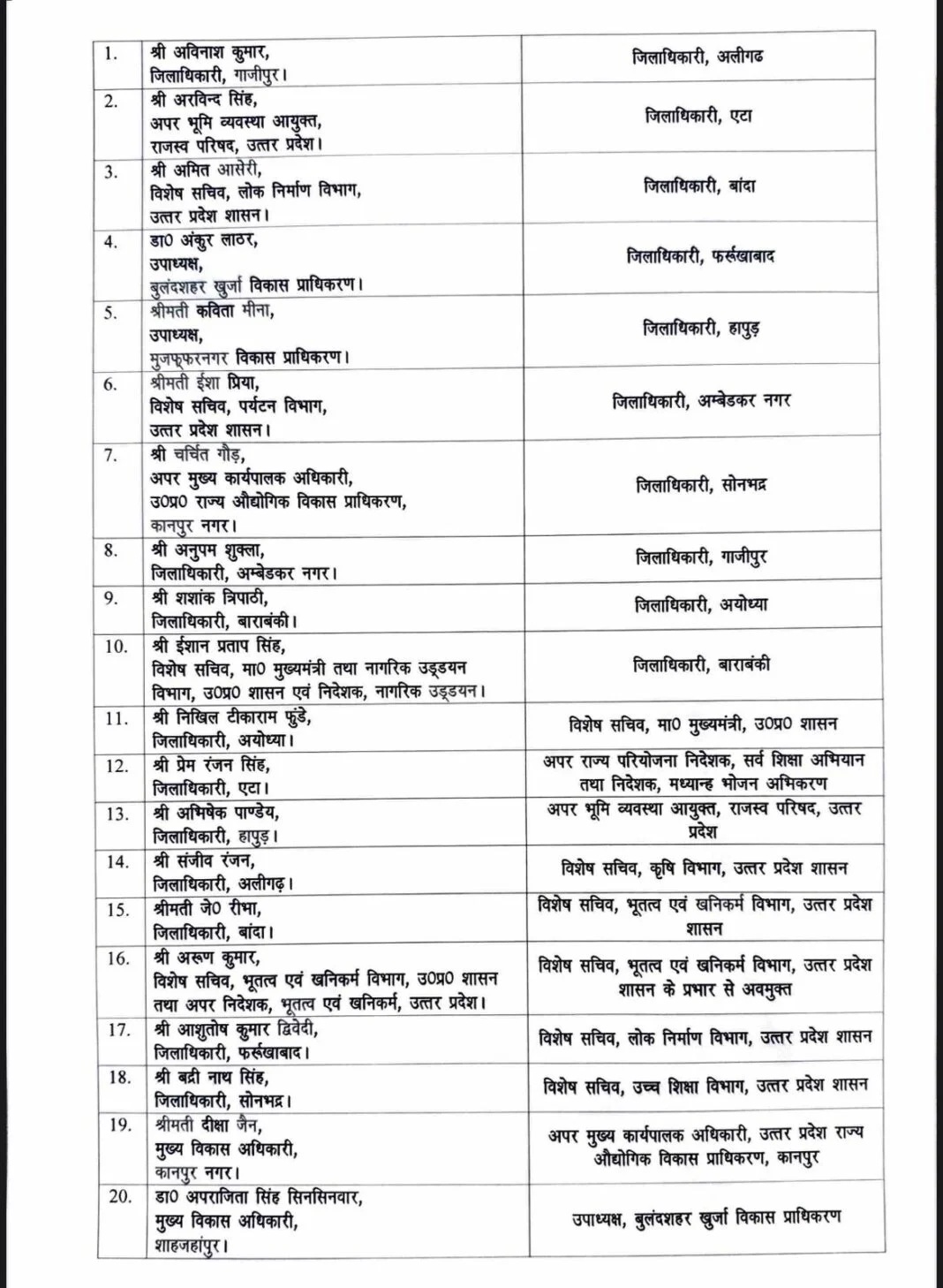 देर रात बदले गए इन 10 जिलों के कलेक्टर, कई जगहों के CDO का भी तबादला, Yogi government transferred IAS officers