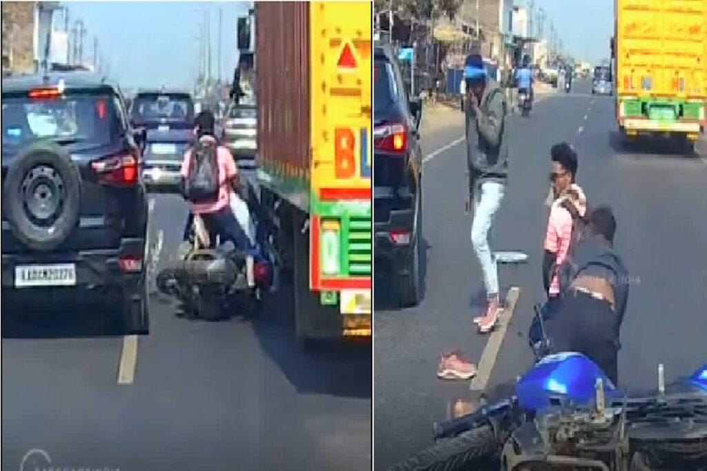 Live Accident Video: वायरल वीडियो में एक बाइक सवार हाईवे पर एक एसयूवी और ट्रक के बीच से निकलने की कोशिश करता हुआ दिखाई दे रहा है। जैसे ही एसयूवी ट्रक के करीब आती है, सवार हैरान हो जाता है और जल्दी से दाईं ओर मुड़ जाता है। बाइक का संतुलन बिगड़ जाता है, एसयूवी से टकराने से पहले वह नीचे गिर जाती है। तीनों बाइक सवार नियंत्रण पाने के लिए संघर्ष करते हैं, बमुश्किल ट्रक से टकराने से बचते हैं।