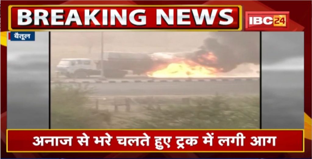 Home » Videos » Betul : Fire broke out in a truck carrying food grains. Watch Video