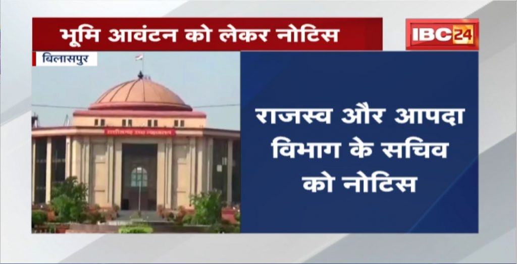 Bilaspur High Court में जनहित याचिका पर हुई सुनवाई। भूमि आवंटन को लेकर राजस्व और आपदा विभाग के सचिव को नोटिस