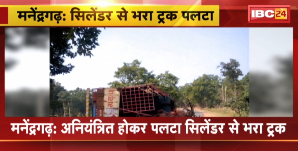 Manendragarh Accident News : अनियंत्रित होकर पलटा सिलेंडर से भरा Truck। हादसे में ट्रक का ड्राइवर घायल