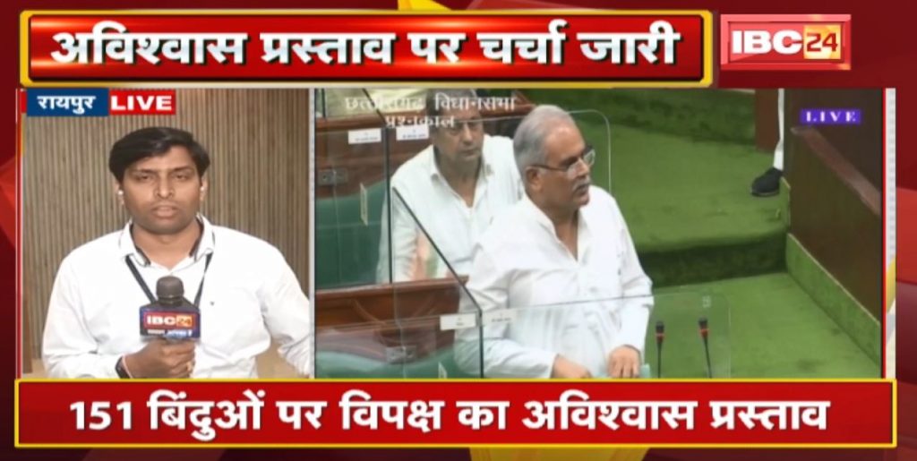 Chhattisgarh Vidhan Sabha में विपक्ष के अविश्वास प्रस्ताव चर्चा जारी। 151 बिंदुओं पर विपक्ष का अविश्वास प्रस्ताव