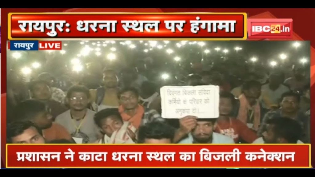 Raipur:संविदा विद्युत कर्मचारी संघ का धरना स्थल पर हंगामा।प्रशासन ने काटा धरना स्थल का बिजली कनेक्शन