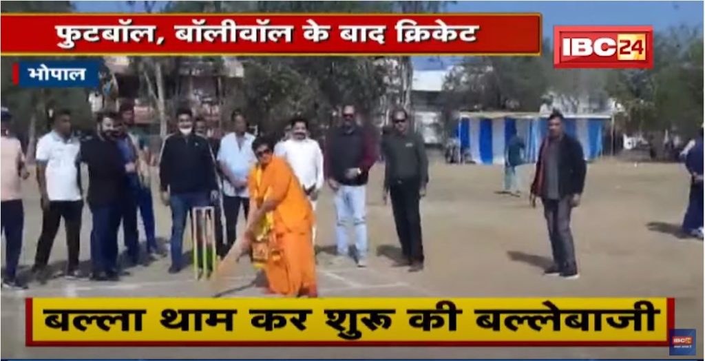 Home » Videos » Sadhvi Pragya tried her hand with the bat. The players were also surprised to see the game. See