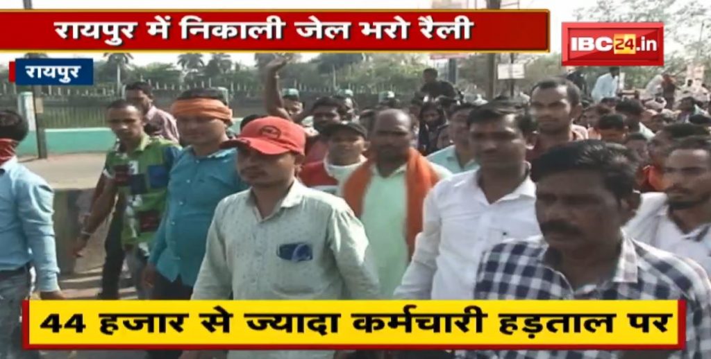 हड़ताल पर स्कूलों के सफाईकर्मी। Raipur में निकाली जेल भरो रैली। देखिए