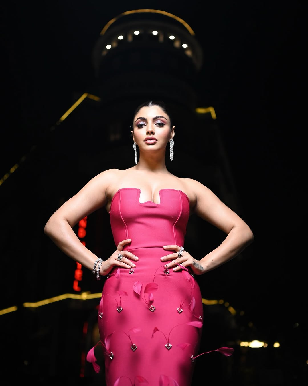 आकांक्षा पुरी ने इस फोटो में पिंक कलर का ऑफ शोल्डर वनपीस पहनकर जबरदस्त अंदाज में पोज दिए हैं।