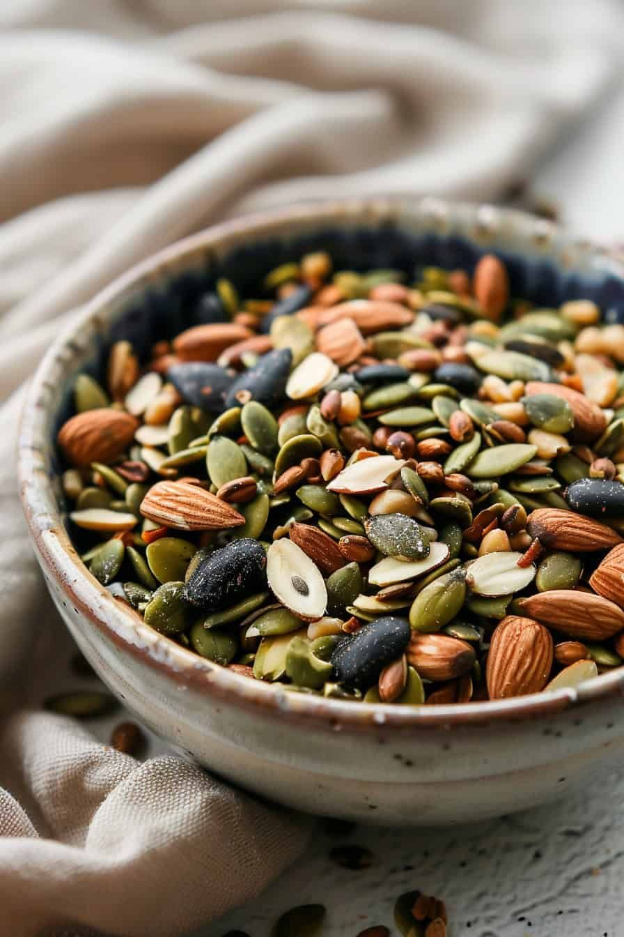 कद्दू के बीज (Pumpkin Seeds) जिंक, मैग्नीशियम और प्रोटीन का बेहतरीन स्रोत। भूने हुए बीज स्नैक्स या सलाद में शामिल करें।