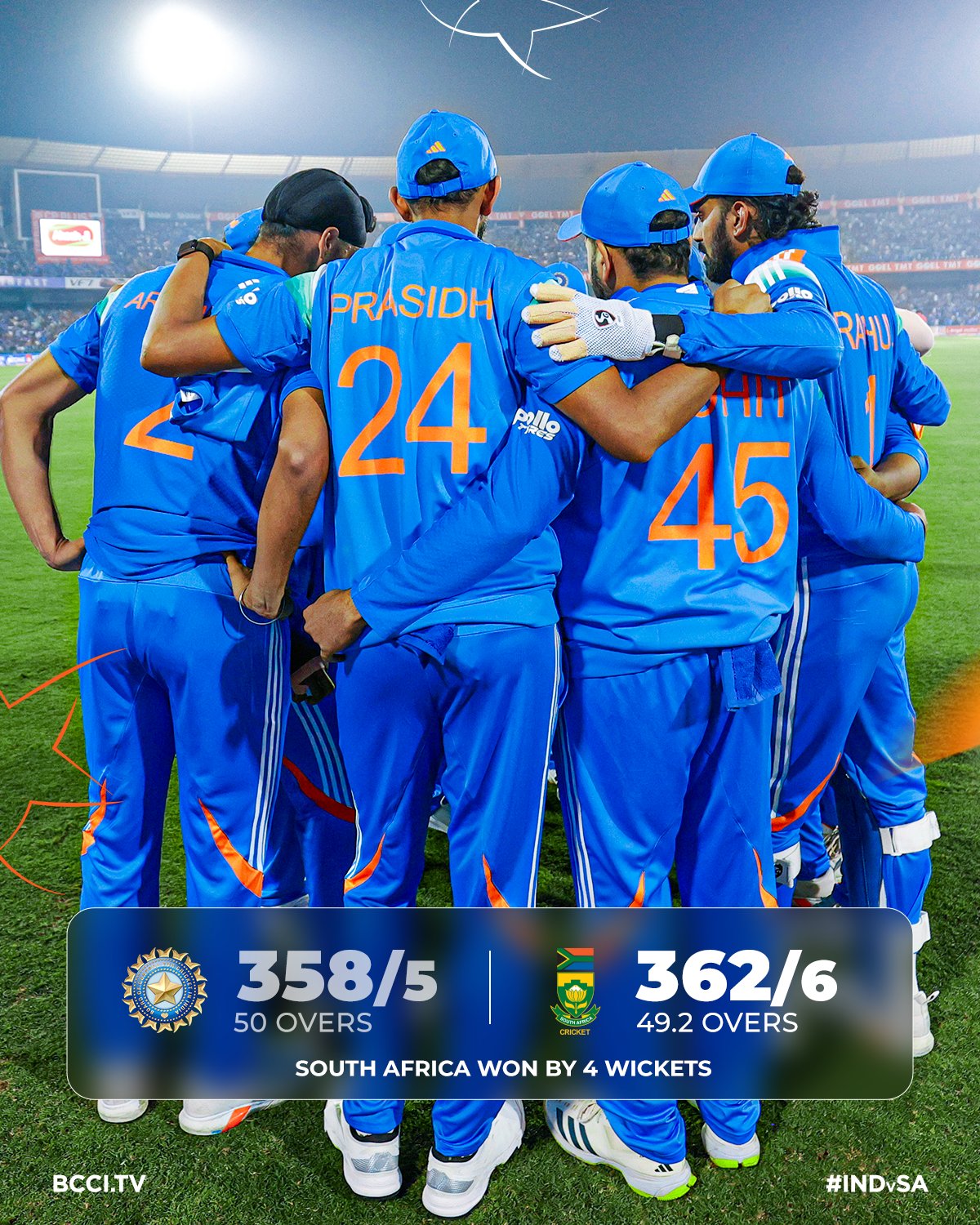 दक्षिण अफ्रीकी बल्लेबाजों ने बेहतरीन खेल का प्रदर्शन करते हुए इस बड़े लक्ष्य का पीछा किया और पहली बार भारत के खिलाफ 359 रन बनाकर जीत हासिल की।