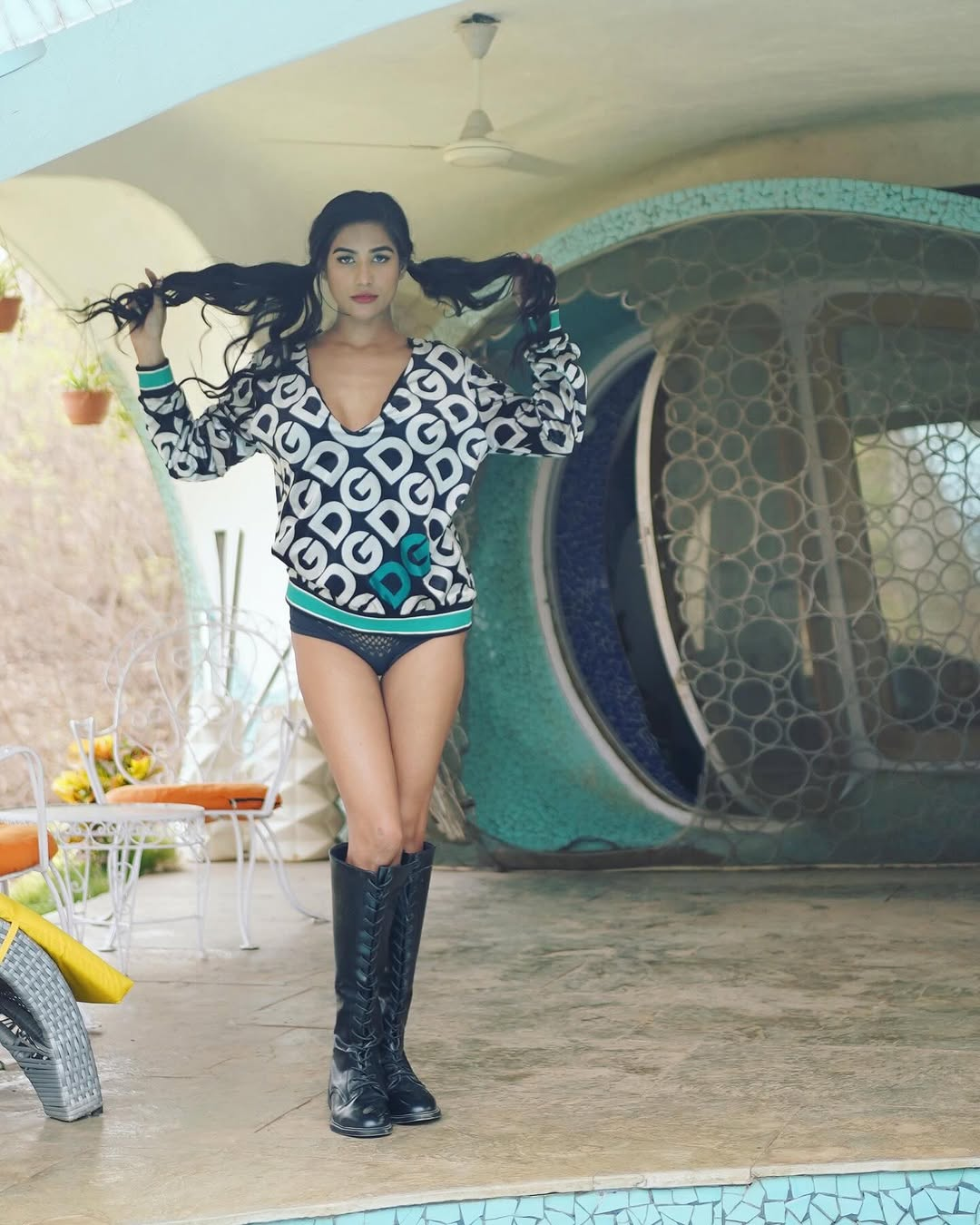 पूनम ने हाल ही में इंस्टाग्राम पर अपनी कुछ बोल्ड तस्वीरें शेयर की हैं, जिसमें वह डीप नेक ओवरसाइज्ड स्वेटर, ब्लैक अंडरगारमेंट्स और लॉन्ग बूट्स में नजर आ रही हैं।