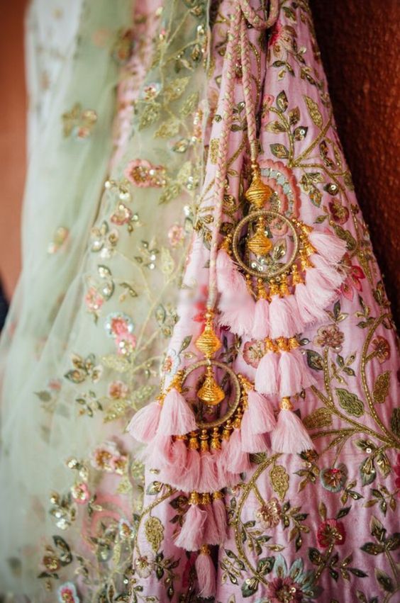 जहां थ्रैड इम्ब्रॉयडरी आउटफिट को और भी ग्लैमरस बना देती है, वहीं आप अपनी इम्ब्रॉयडरी के बजाएं अपने लहंगे, ब्लाउज या साड़ी के पल्लू पर थ्रैड लटकन लगा सकती है जो उन्हें काफी स्पैशल दिखाएंगे।