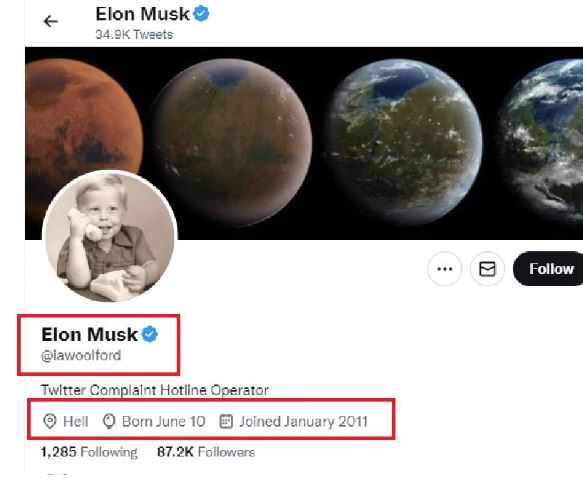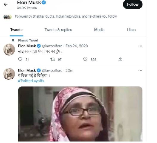 इतना ही नहीं इयान वुलफोर्ड लगातार मस्क के नाम से ट्वीट कर रहे थे, जिसके बाद उनका अकाउंट सस्पेंड हो गया है। वुलफोर्ड हिंदी और भोजपुरी दोनों भाषा में कई ट्वीट मस्क के नाम पर किए थे। मस्क और ट्विटर कई दिनों से चर्चा में बने हुए हैं। पहले ट्विटर डील को लेकर और फिर ट्विटर से लोगों की छंटनी को लेकर।