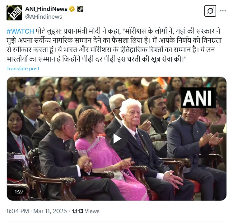 - प्रधानमंत्री मोदी को मॉरीशस का सर्वोच्च नागरिक सम्मान ‘ग्रांड कमांडर ऑफ ऑर्डर’ मिलेगा